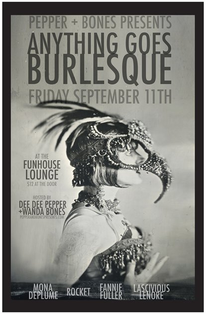 Producers Dee Dee Pepper and Wanda Bones are bringing Pepper + Bones Presents: Anything Goes Burlesque back to the Funhouse Lounge on Friday September 11!